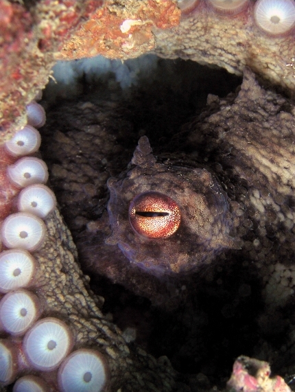 〜大切な物〜 大切な物を失うということは、 すごく悲しい事なわけで、、、 大切な物が増えれば増えるほど、 失うリスクは大きくなるのに、 たくさん、欲しくて、探して、無理して、手に入れて。 手に入れた時の喜びが大きければ大きいほど、 失う時の事など考えもしない。 なんとも人間という生き物は欲深なもので。 写真は、タコの母親の様子。 じっくり観察すればするほど、 この子の大切な物は1つしかない事が良くわかる。 汚れれば、やさしく払い、 外敵が近づこうものなら、隠し、 一生懸命、新鮮な水を送り続け、 約100以上の米粒大の卵がついた「房」を数十本、 1匹の母親が、一手に引き受け、 何万という、新しい命の誕生のために、最善を尽くす。 自らの命と引き換えに。。。 そう、大切な物を守っている最中は、 一切、エサはとらない。 大切なものから、一瞬たりとも離れたりしない。 孵化までは数週間。 私達には想像すら出来ない、数週間。 外敵からの攻撃に耐え、飢えに耐え、 体力の消耗を最小限に抑えながらも、 痩せ、衰え、必死にその時を待ち続ける数週間。 孵化直前まで最後の力を振り絞り、 生まれてくるわが子のために、新鮮な水を送り続ける。 わが子の誕生を見届けると、張り詰めていた1本の糸が、 音も無く、静かに途切れ、安心したように、 いたって、安らかに、その一生にピリオド打つ。 タコの一生。 〜大きな海の小さな物語〜 数字的には、1の母親から、何万もの子供達。。。 子孫を繁栄させるためには、実に効率の良い様に見えるが、、、 なんだろう。。。 なんなんだろうか。。。 この気持ちは。 行き場の無い、やりきれない感じ。。。 なんともグロテスクな風貌で、 イセエビを食い散らかし、 貝を食い散らかし、 カニを食い散らかし、 8本の足をたくみに使い、水中を泳ぎ、 体色を自由に変化させ、辺りに身をなじませ、 墨を吐き、威嚇して、外敵から身を守り、 人間の乱獲から逃れて立派に成長した猛者たちでさえ、 子孫繁栄のために当たり前の様に身を投げる。 「悲し」くなんかない。 「切ない・・・・。」 なんて言葉だけでは終われない。 大切な物を全力で守り通す。 誰に教えられた訳でもなく、 誰に誉められる訳でもない、 本能という、営み。 旅立って行く何万もの子供達は、 この世に生を受け、初めて目にする物は、 自分の誕生の為に変わり果てた母親の姿。 母親はその亡骸で何を訴え、 子供達は何を学ぶのか? 旅立って行く何万もの子供達も、 数年後には、当然のように同じ事を同じ様に繰り返す。 大切な物を全力で守り通す。 本能という、営み。 そんな大切な物、 あなたはお持ちですか? そんな大切な物、 実は近くにあったりする事、 あなたはお気づきですか? 私なんかはね、 失って初めて気付いたりするんです。 そんな大切な物にね。 私なんかはね。。。(笑) 2006/10/02 Keiji Hasuike |
