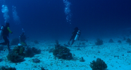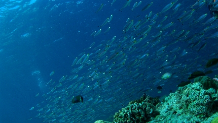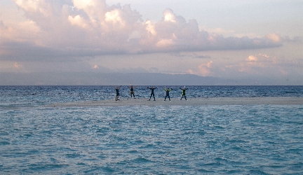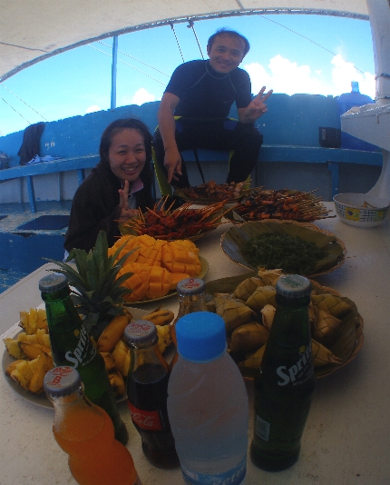 ひたすら蒼い海のドロップオフ沿いに深度を取って行くと、 プラットホームのような砂地が現れたりする。 ![]() スパインチークアネモネフィッシュ ホシゴンベ ど干潮時しか現れない、「幻の島」。 せっかくなので、ボートを止めてもらい、上陸。 我々が上陸する前はこれでもかってって程の鳥たちが、 貝なんかをついばんでた。 もっと引いた絵で見せたいけど・・・これで限界。 一応、人だとわかるでしょ? 船上のBBQランチ。 ボート上はドリンクフリー。 栓抜きはないけど。(笑)私は現地スタッフに開け方を伝授してもらいました。 マンゴーはさすがにうまいよ。食べすぎ注意。(笑) このあと、まだまだ出てきた。写真は半分ほど。 ソーセージにカニ、貝にアジの串焼き、結局食べ切れませんでした。 なので、2日目は量を減らしてもらいました。 それでも多い。 で、通常は日本食のお弁当。これでも充分満足。 レッドチークアンティアス ハナタカサゴの群れ。壮絶な数でした。 マダムもびっくり!(笑) ![]() 土曜日のサンクチュアリにはこんだけボートが並ぶ。 スノーケラー達も集まってくる。 ![]() ![]() オドリハゼとオトメハゼ。 ![]() ニチリンダテハゼ。 ![]() ツバメウオ。 最後のニチリンとツバメウオが今回私のベストショット。 陸・水中あわせて200枚ほど撮った。 コンデジでマクロとワイド制覇。(笑) 待ってろよセブ。 次はばかでっかい一眼持っていってやるから。 今回の私に関しては6年前のコンデジだからね。 シャッター押してしばらくしてからおりるやつ。(笑) でも、コンデジでも十分、撮れるから。 とりあえず、ものは試し。 一度、訪れてみてはいかがですか? セブ・マクタン島。 いいトコですよ。 というか、いいとこでした。(笑) さて、次はいついくかなぁ〜。 |